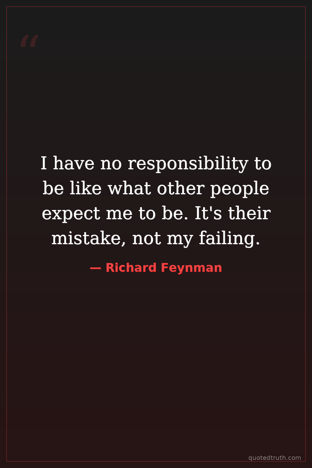 I have no responsibility to be like what other people expect me to be. It's their mistake, not my failing.