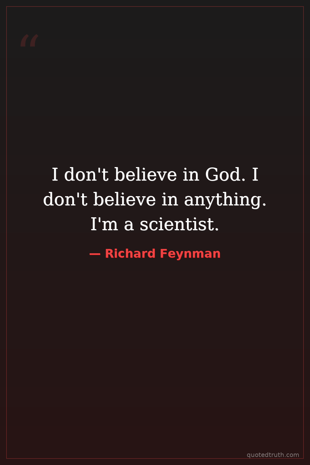 I don't believe in God. I don't believe in anything. I'm a scientist.