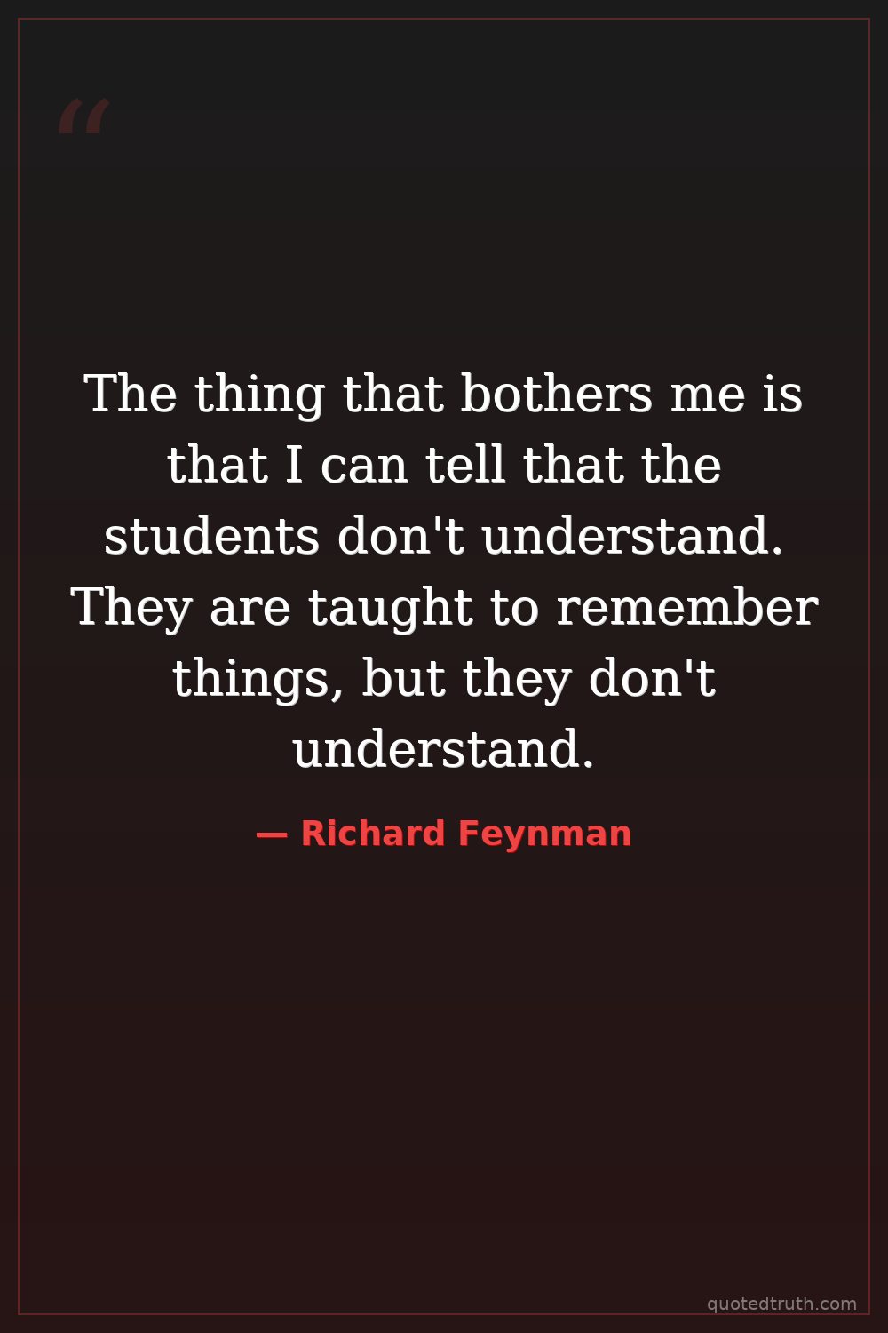 The thing that bothers me is that I can tell that the students don't understand. They are taught to remember things, but they don't understand.