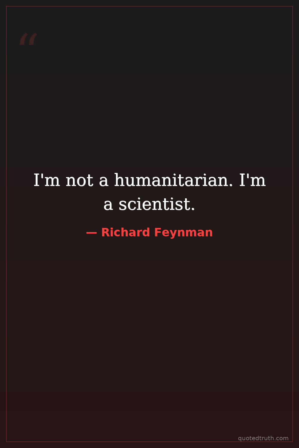 I'm not a humanitarian. I'm a scientist.