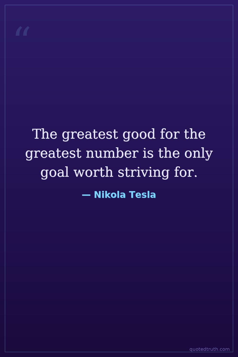 The greatest good for the greatest number is the only goal worth striving for.