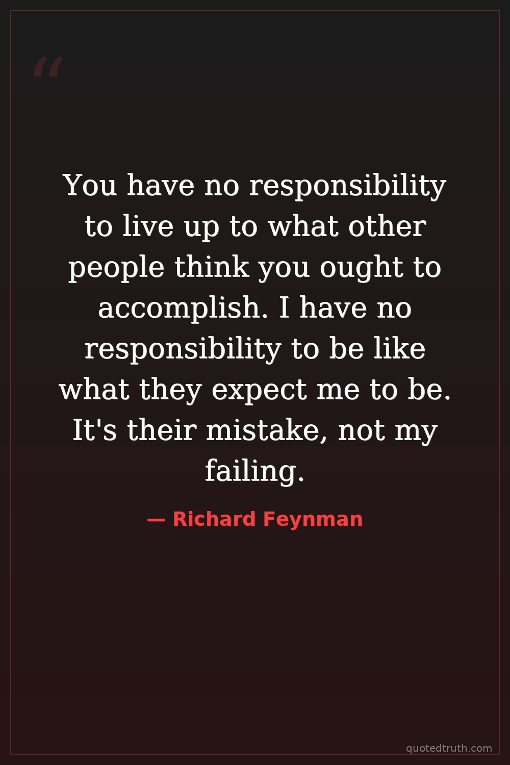 You have no responsibility to live up to what other people think you ought to accomplish. I have no responsibility to be like what they expect me to be. It's their mistake, not my failing.