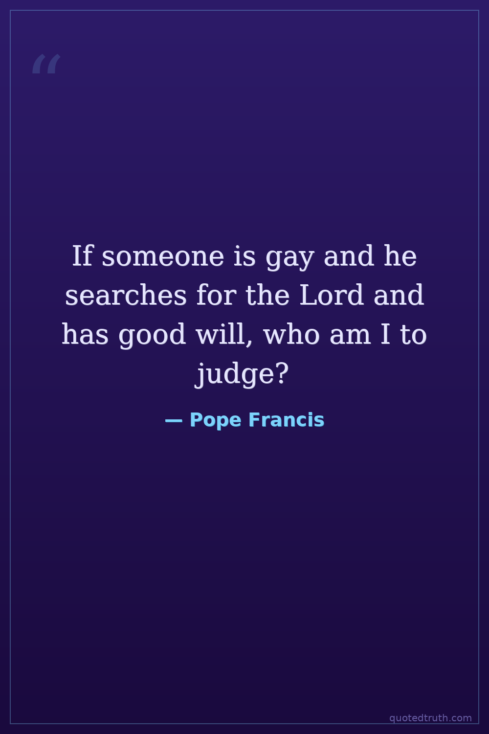 If someone is gay and he searches for the Lord and has good will, who am I to judge?
