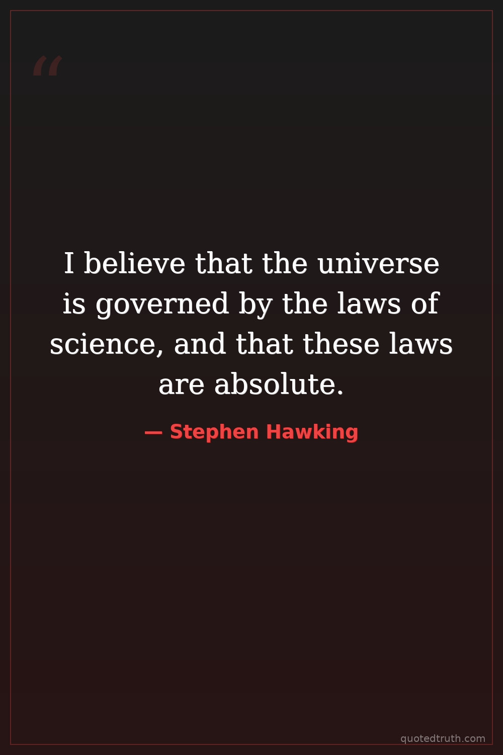 I believe that the universe is governed by the laws of science, and that these laws are absolute.
