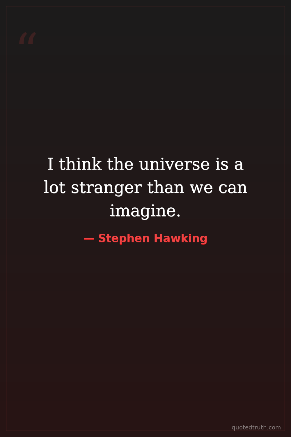 Humorous"Einstein was wrong when he said, 'God does not play dice'. Consideration of black holes suggests, not only that God does play dice, but that he sometimes confuses us by throwing them where they can't …"