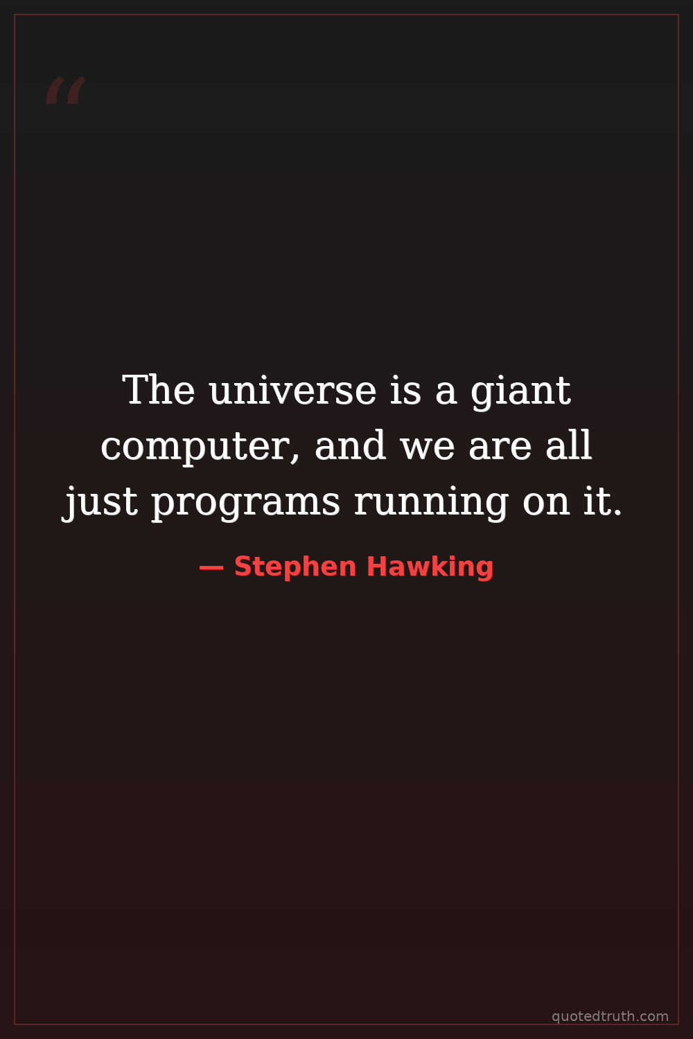 The universe is a giant computer, and we are all just programs running on it.