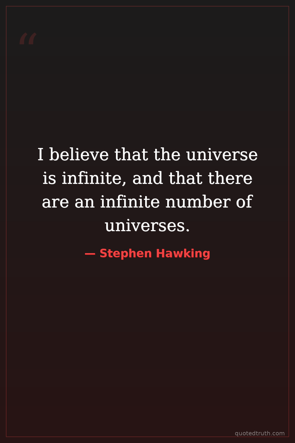 I believe that the universe is infinite, and that there are an infinite number of universes.