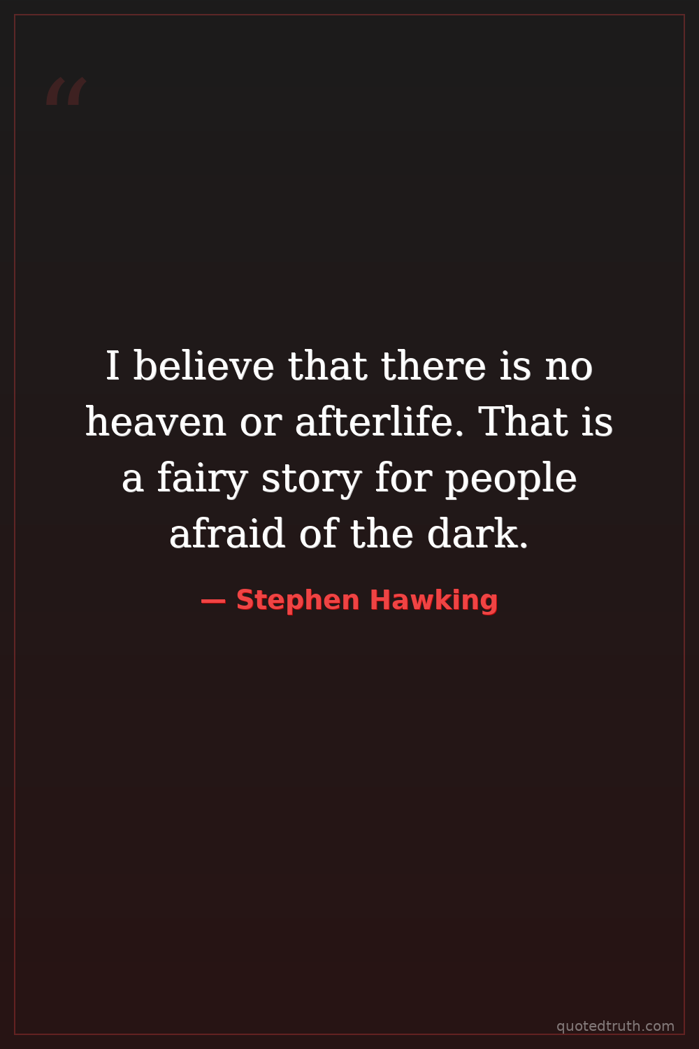 I believe that there is no heaven or afterlife. That is a fairy story for people afraid of the dark.