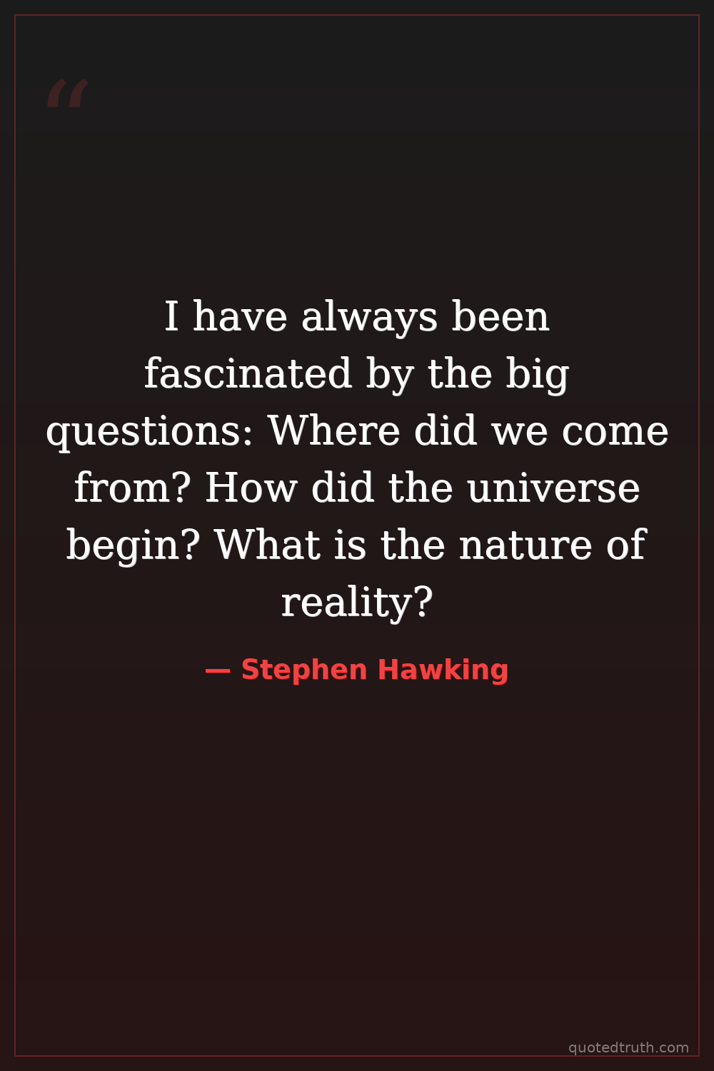 I have always been fascinated by the big questions: Where did we come from? How did the universe begin? What is the nature of reality?