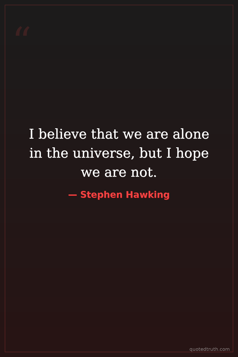 I believe that we are alone in the universe, but I hope we are not.