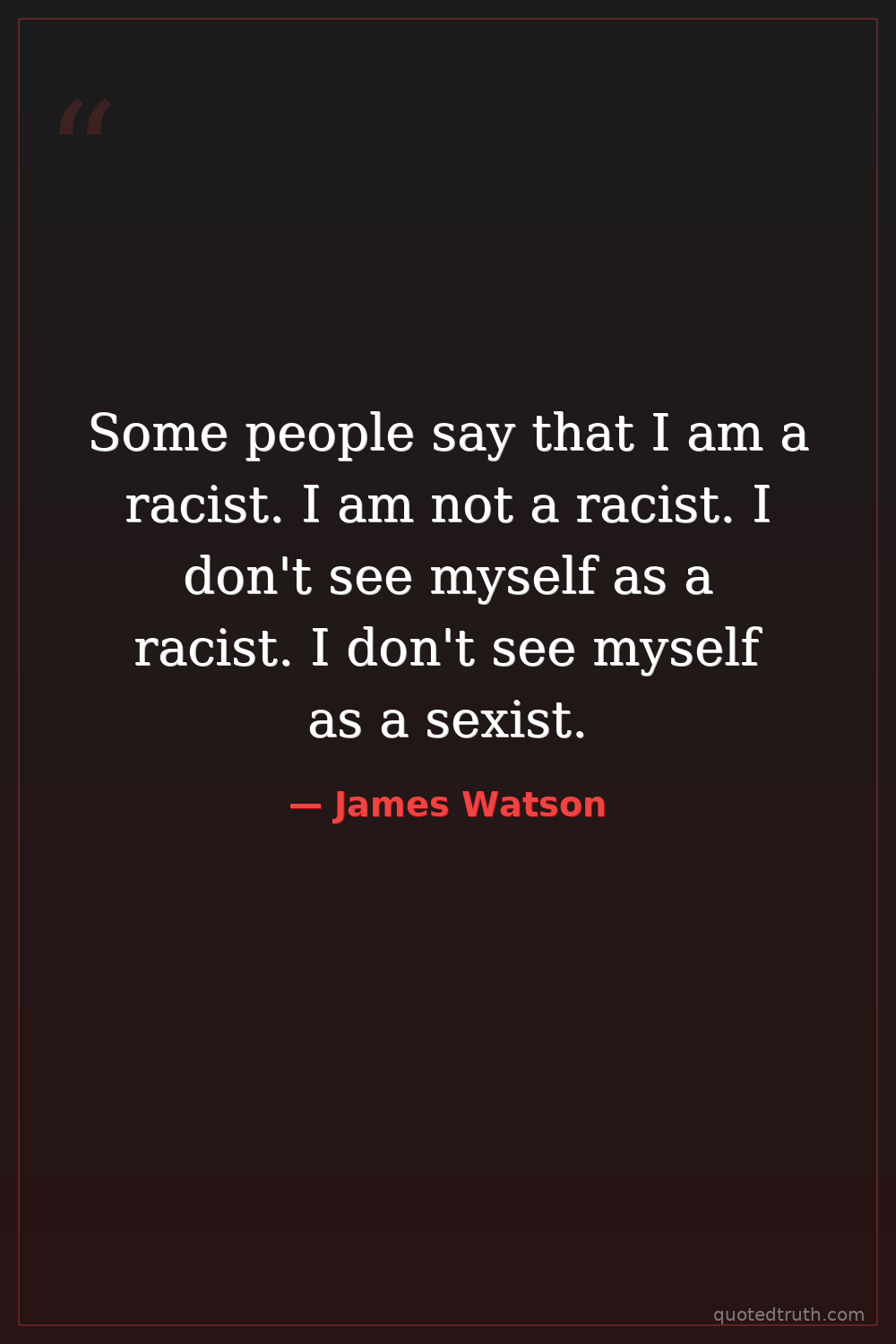 Some people say that I am a racist. I am not a racist. I don't see myself as a racist. I don't see myself as a sexist.