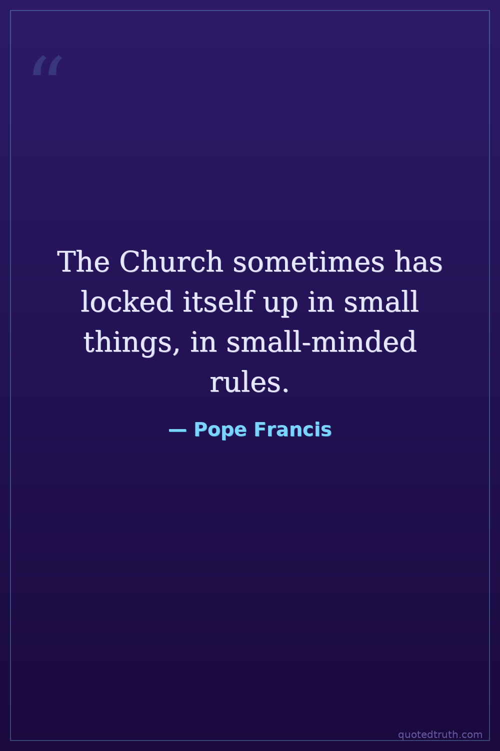 The Church sometimes has locked itself up in small things, in small-minded rules.