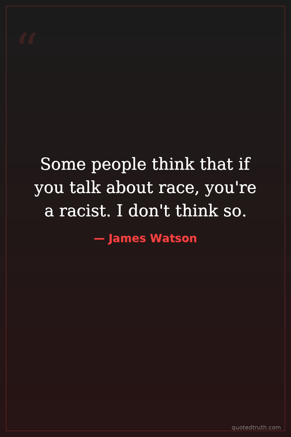 Some people think that if you talk about race, you're a racist. I don't think so.