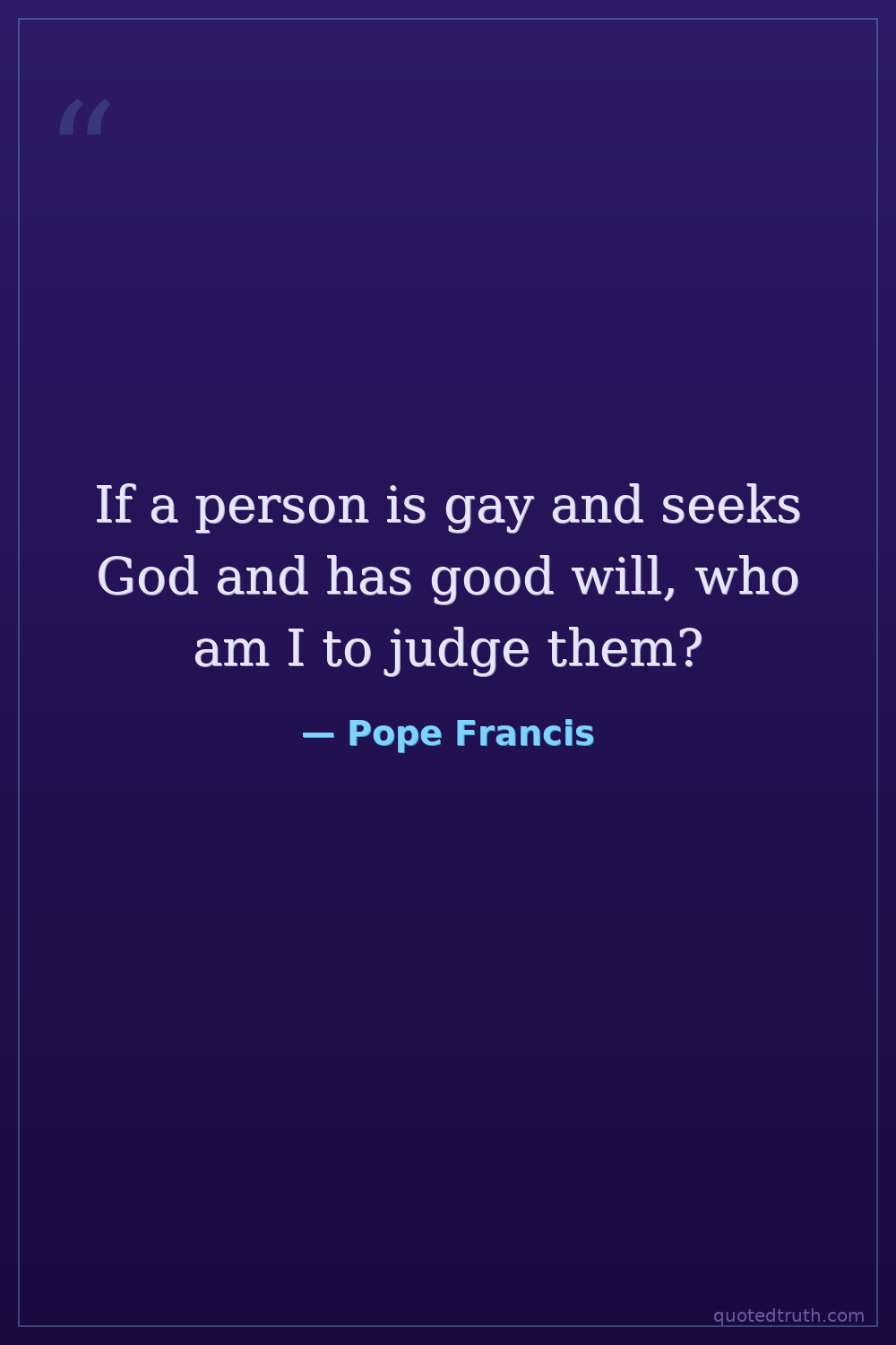 If a person is gay and seeks God and has good will, who am I to judge them?