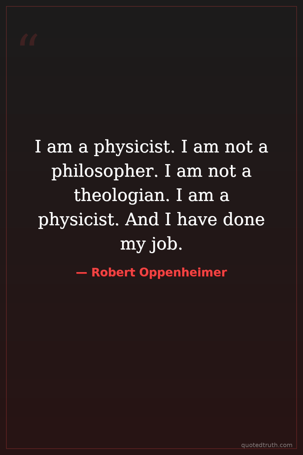 I am a physicist. I am not a philosopher. I am not a theologian. I am a physicist. And I have done my job.