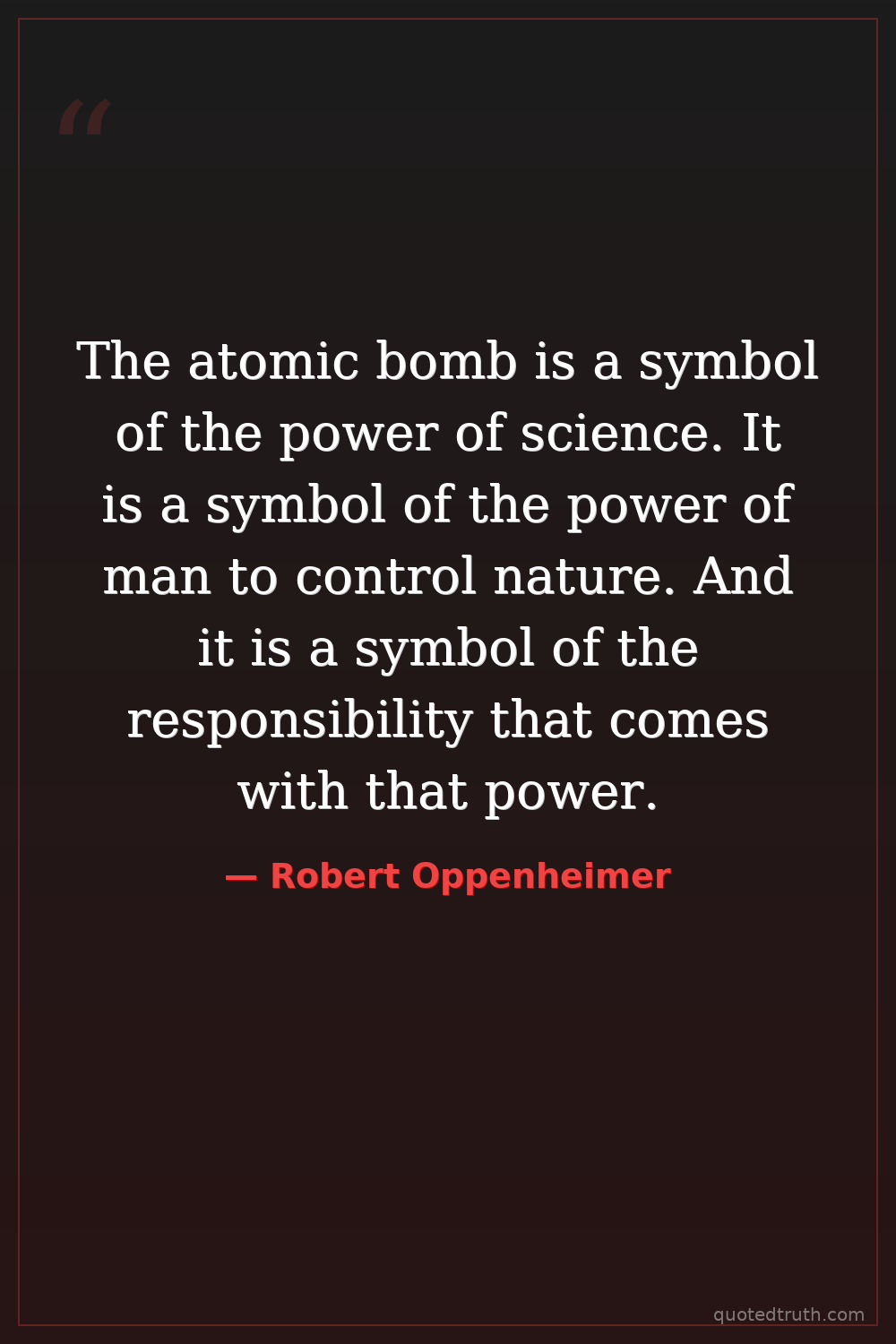 The atomic bomb is a symbol of the power of science. It is a symbol of the power of man to control nature. And it is a symbol of the responsibility that comes with that power.