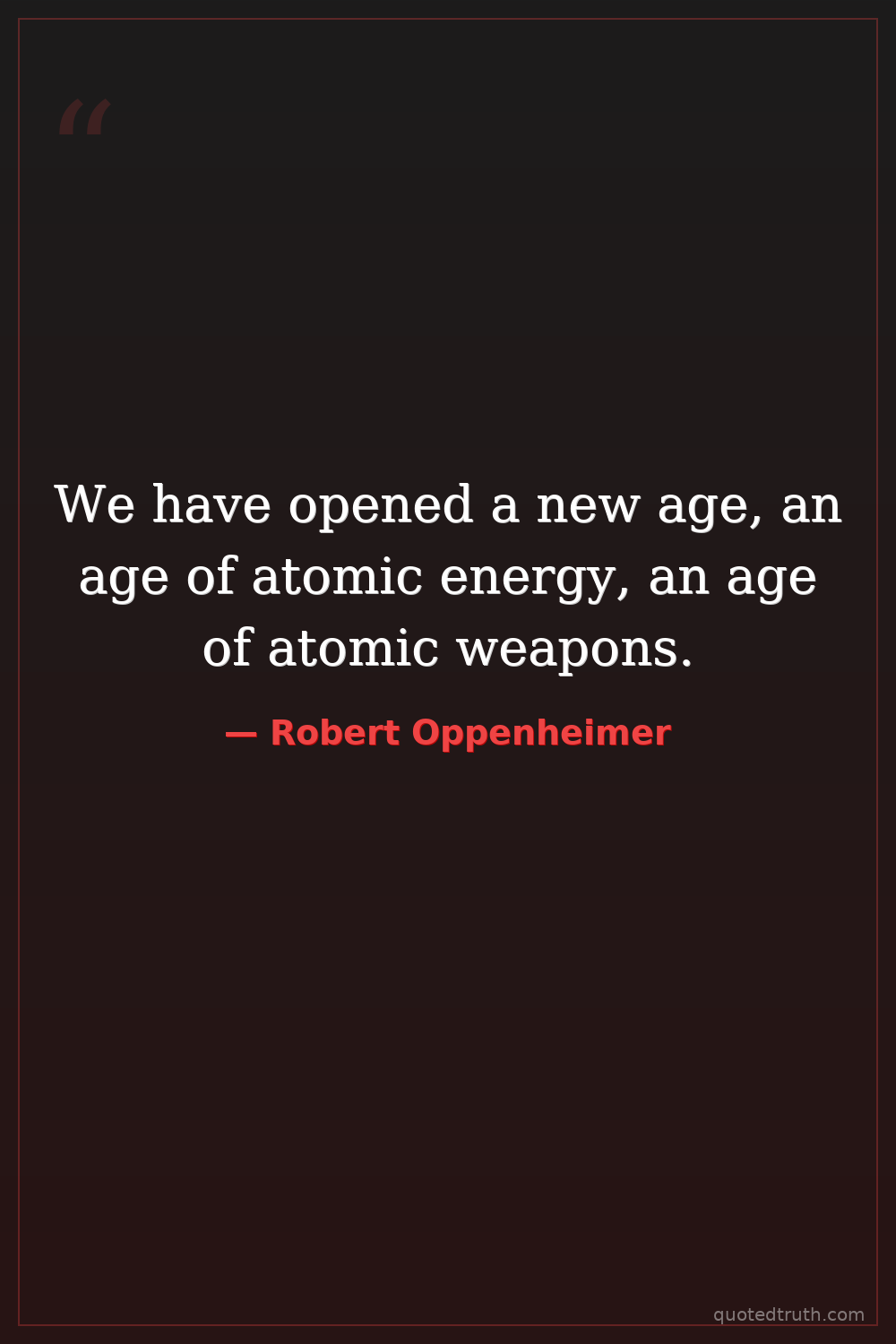 We have opened a new age, an age of atomic energy, an age of atomic weapons.