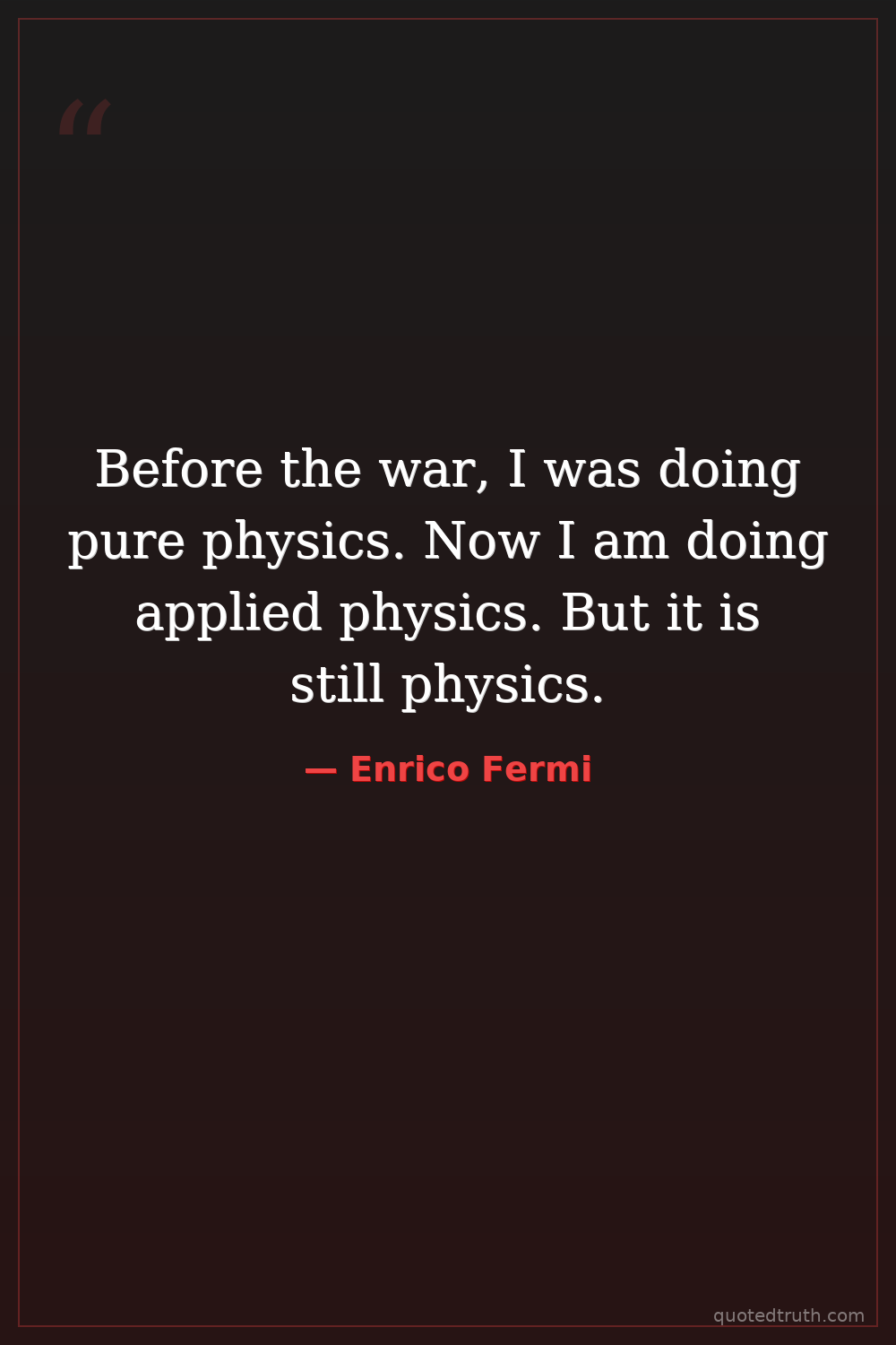 Before the war, I was doing pure physics. Now I am doing applied physics. But it is still physics.
