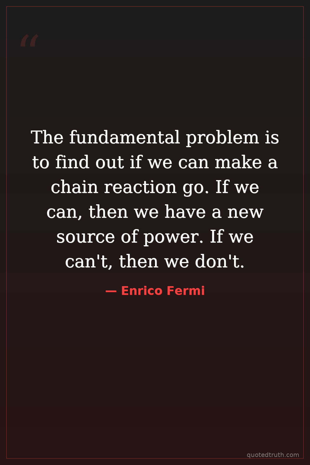 The fundamental problem is to find out if we can make a chain reaction go. If we can, then we have a new source of power. If we can't, then we don't.