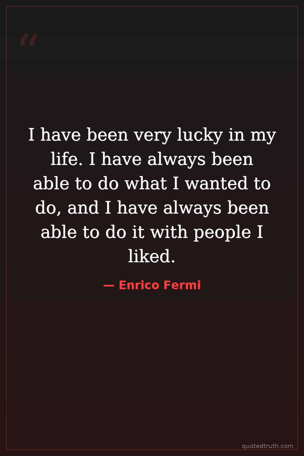 I have been very lucky in my life. I have always been able to do what I wanted to do, and I have always been able to do it with people I liked.