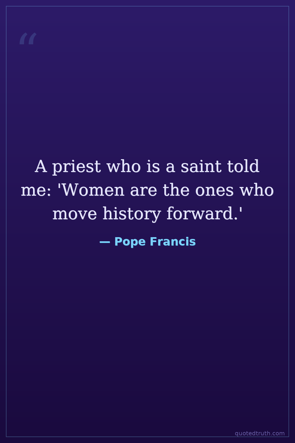 A priest who is a saint told me: 'Women are the ones who move history forward.'