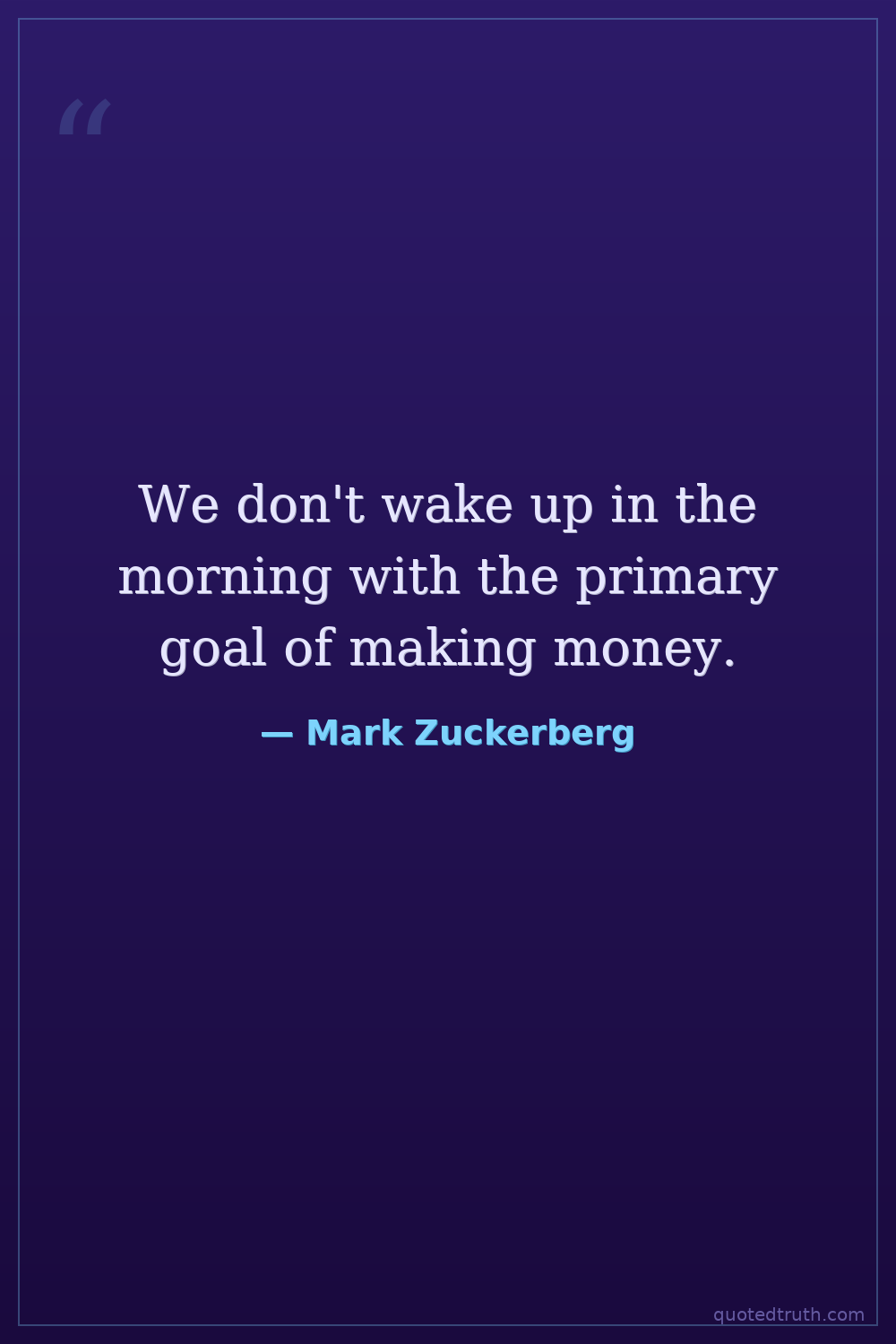 We don't wake up in the morning with the primary goal of making money.