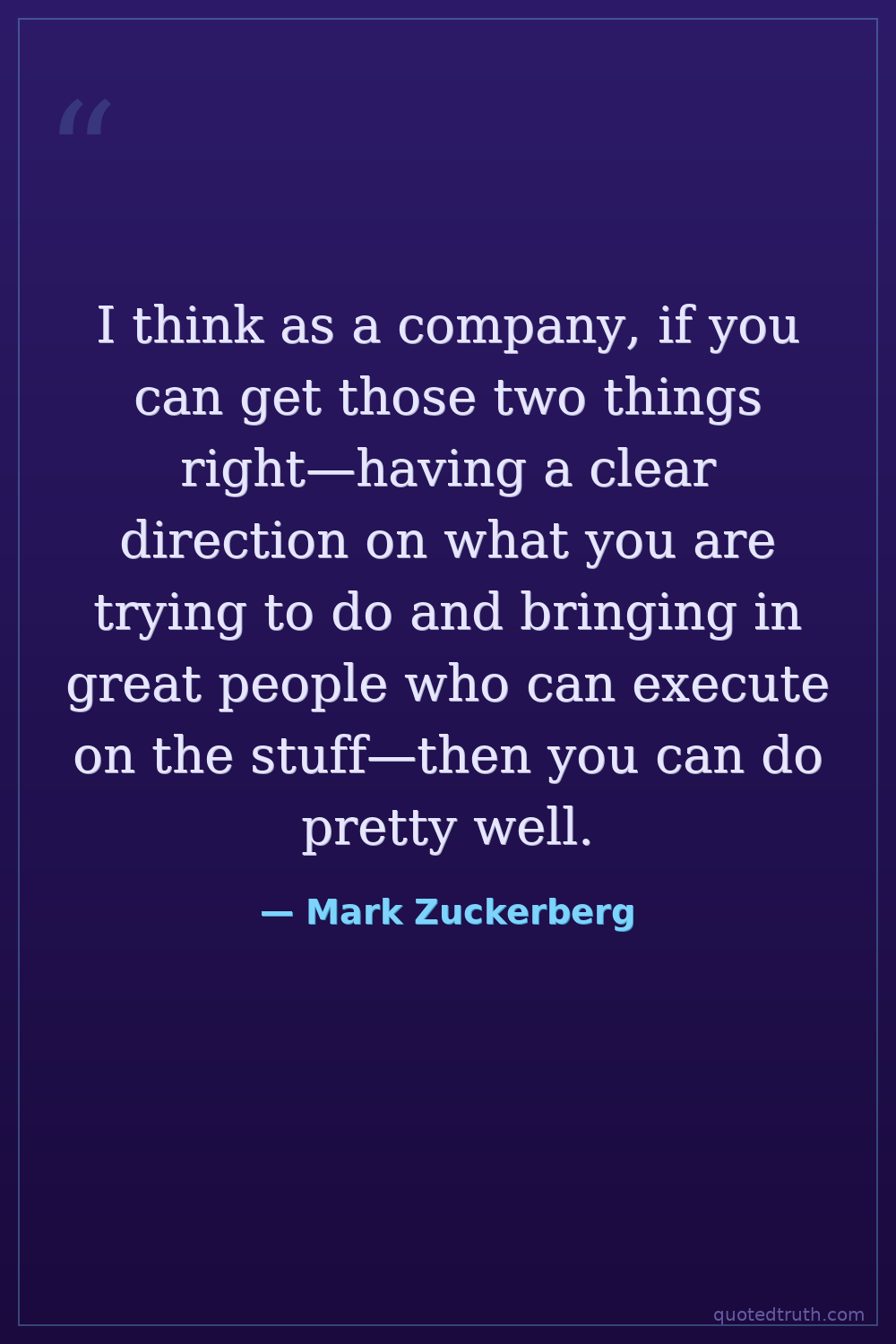 I think as a company, if you can get those two things right—having a clear direction on what you are trying to do and bringing in great people who can execute on the stuff—then you can do pretty well.