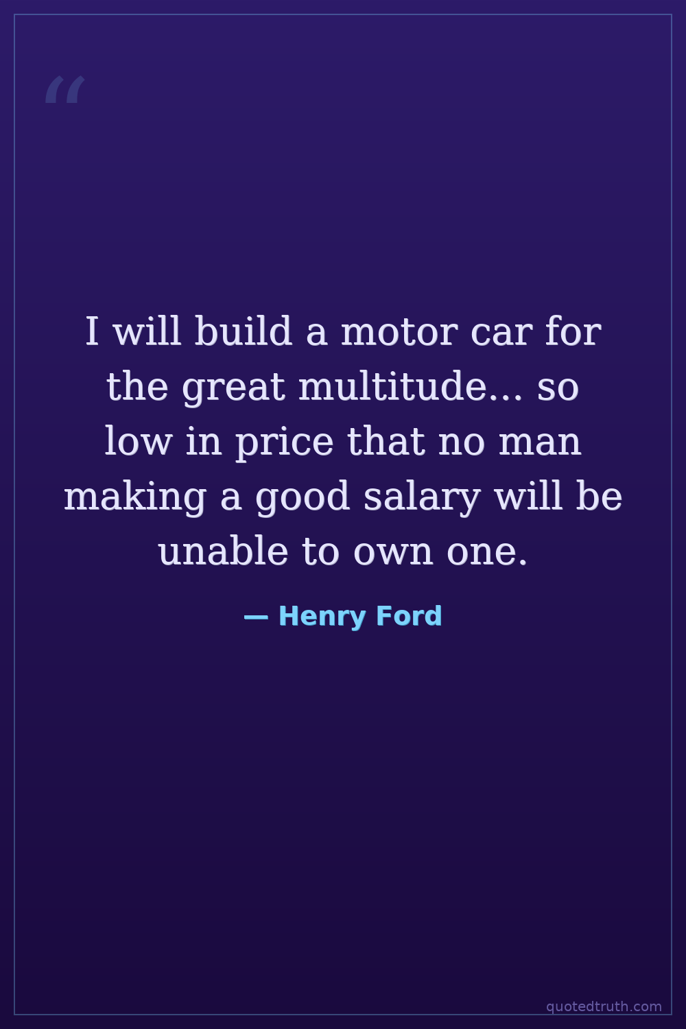 I will build a motor car for the great multitude... so low in price that no man making a good salary will be unable to own one.