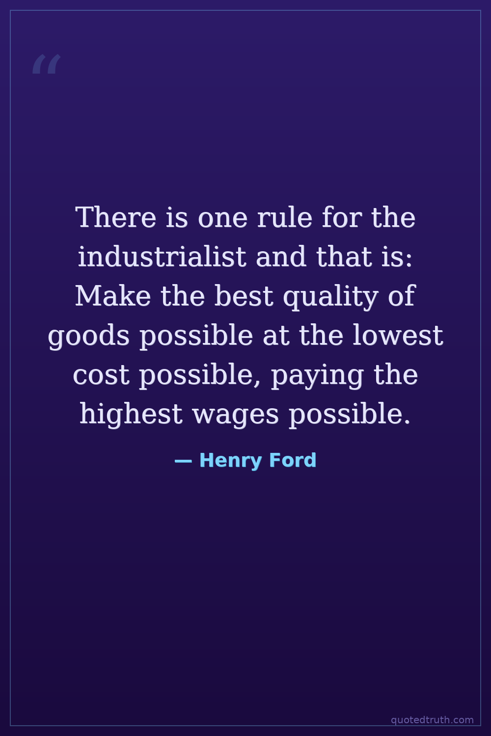 There is one rule for the industrialist and that is: Make the best quality of goods possible at the lowest cost possible, paying the highest wages possible.