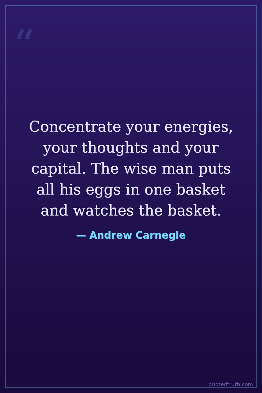 Concentrate your energies, your thoughts and your capital. The wise man puts all his eggs in one basket and watches the basket.