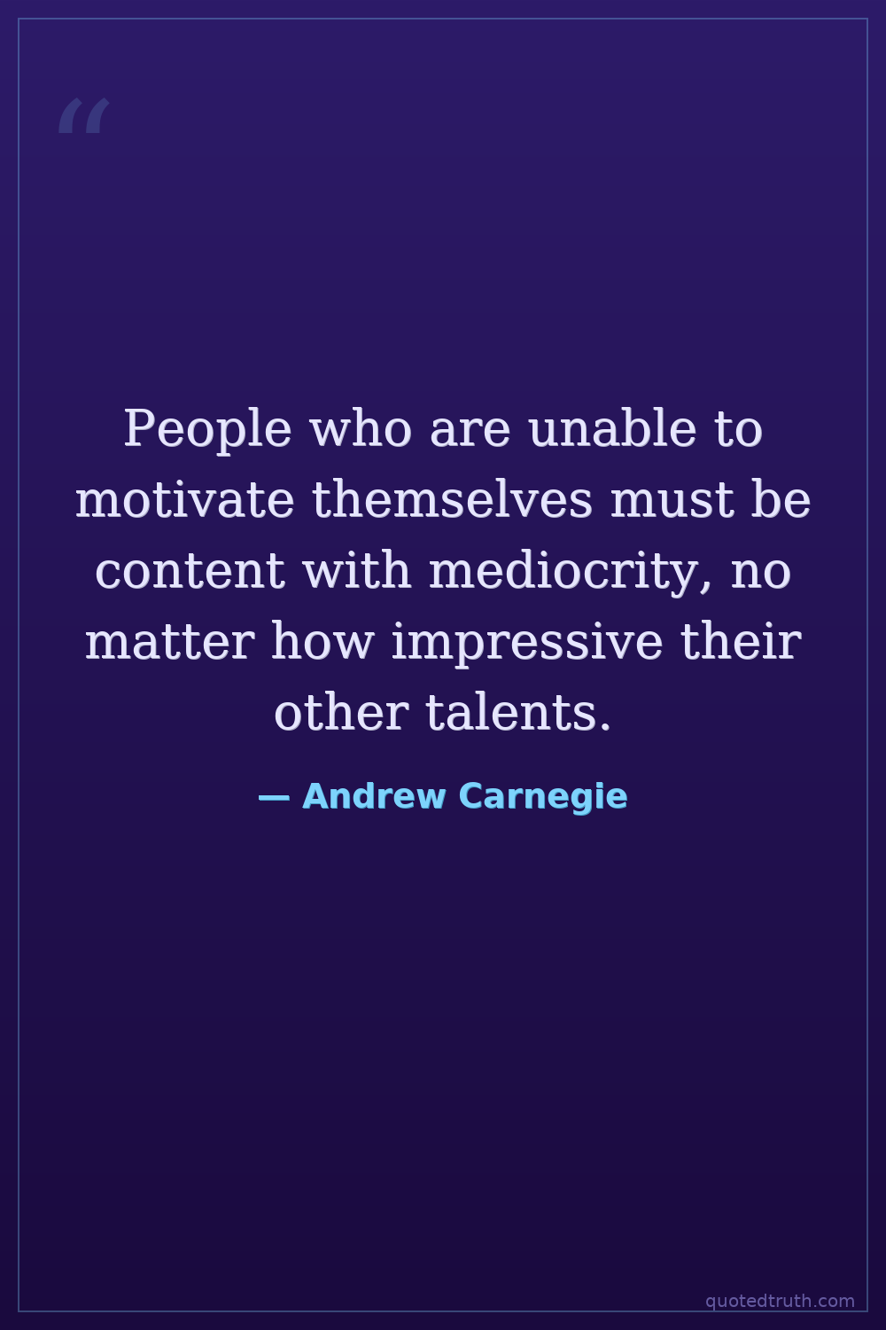 People who are unable to motivate themselves must be content with mediocrity, no matter how impressive their other talents.