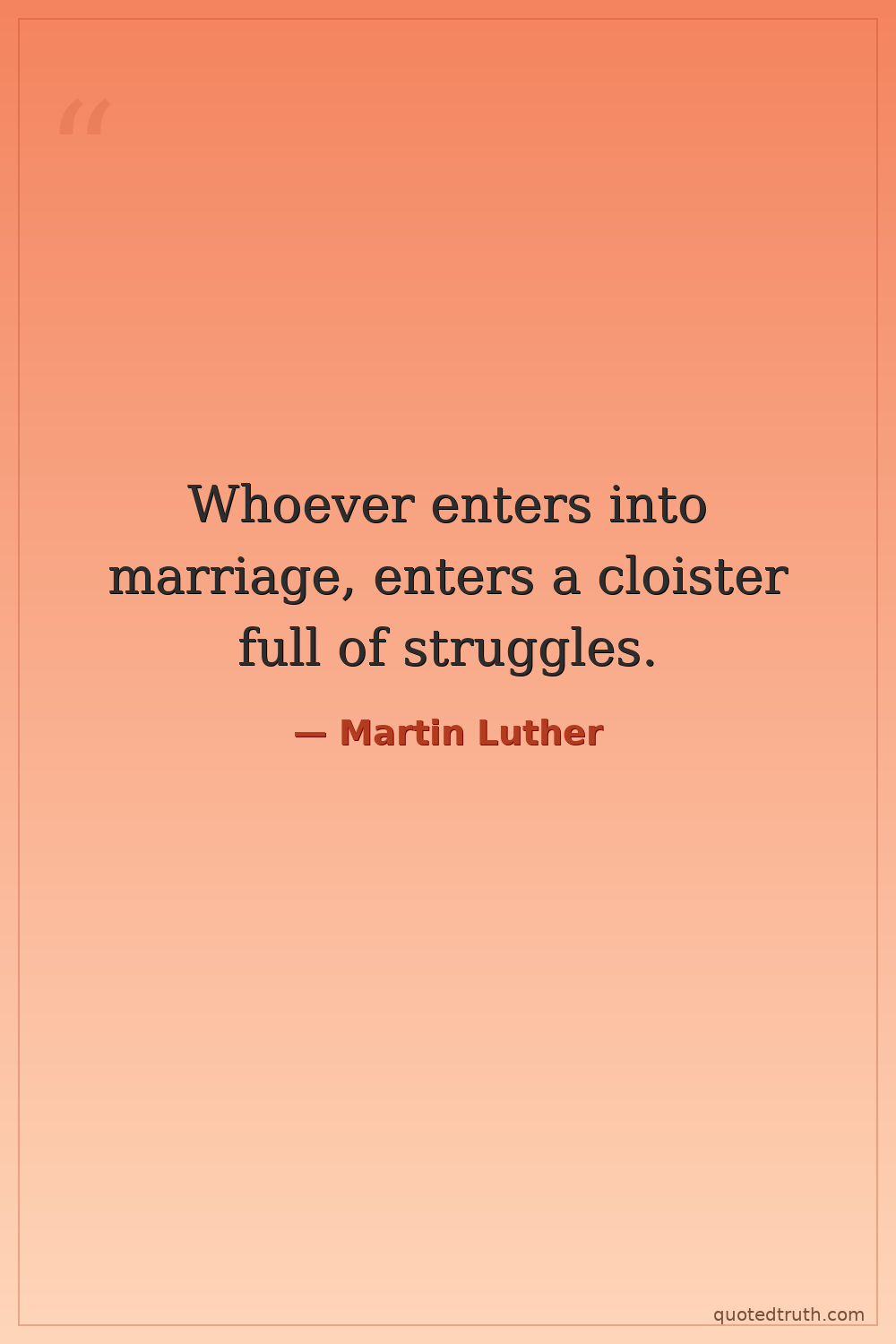 Whoever enters into marriage, enters a cloister full of struggles.