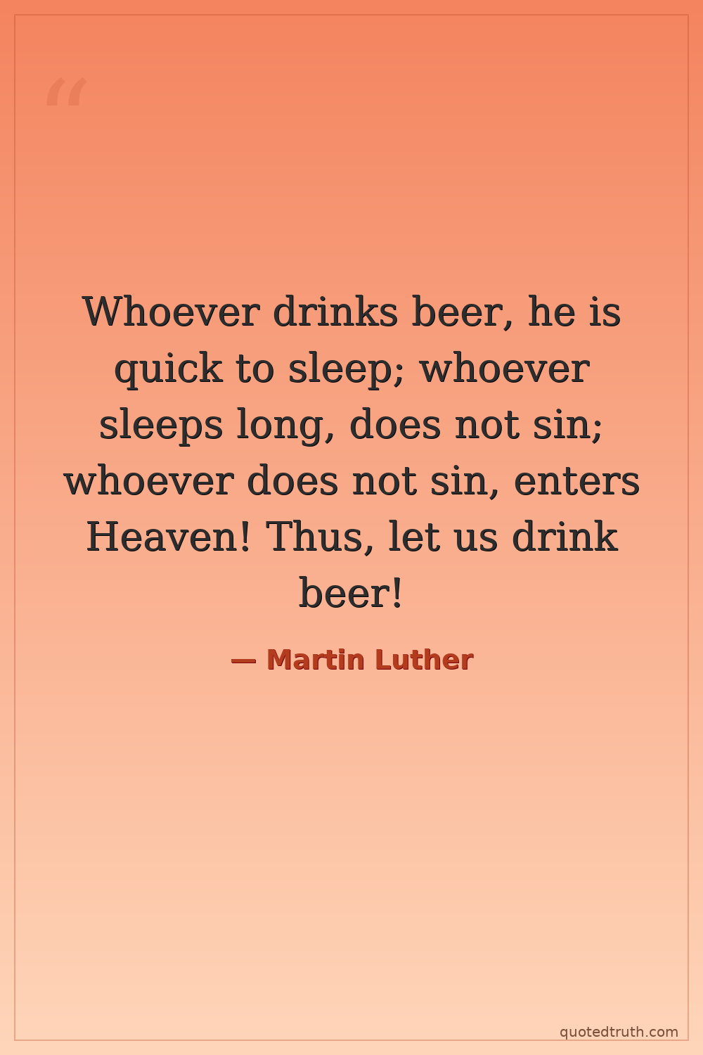 Whoever drinks beer, he is quick to sleep; whoever sleeps long, does not sin; whoever does not sin, enters Heaven! Thus, let us drink beer!
