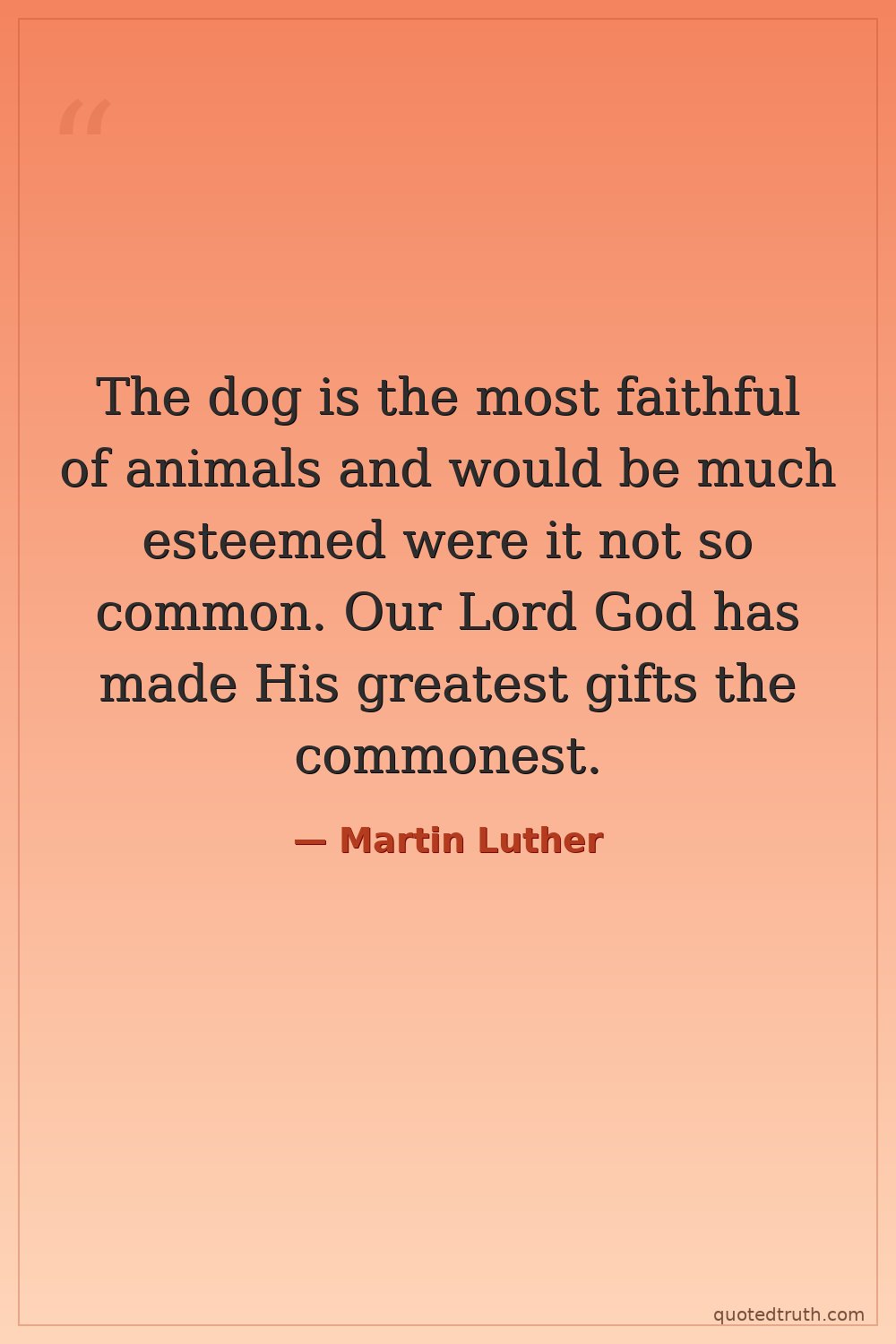 The dog is the most faithful of animals and would be much esteemed were it not so common. Our Lord God has made His greatest gifts the commonest.