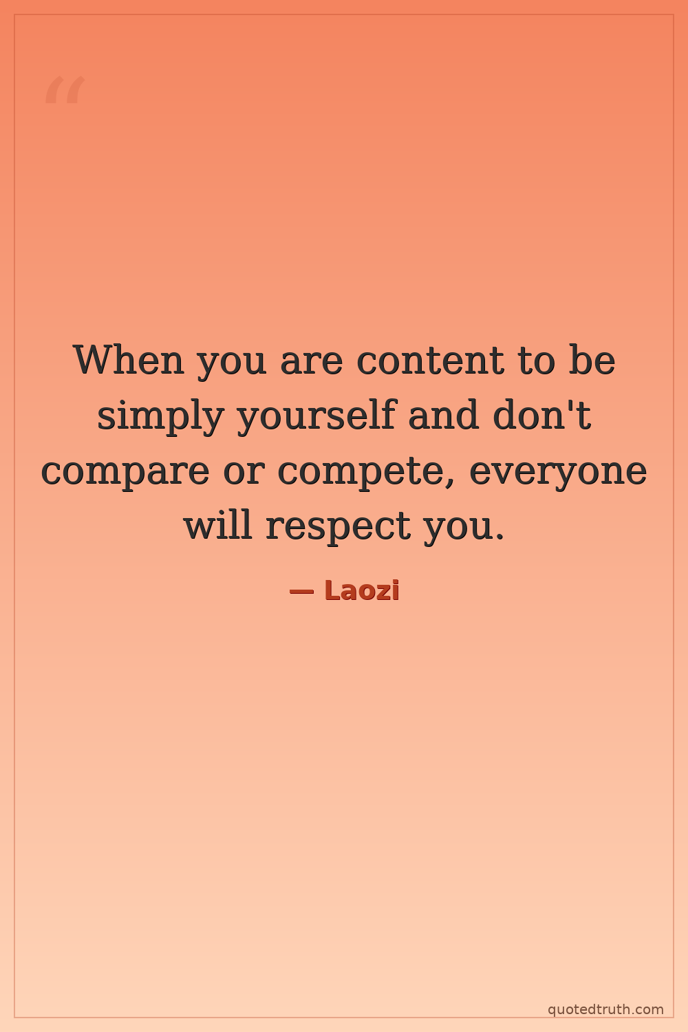 When you are content to be simply yourself and don't compare or compete, everyone will respect you.