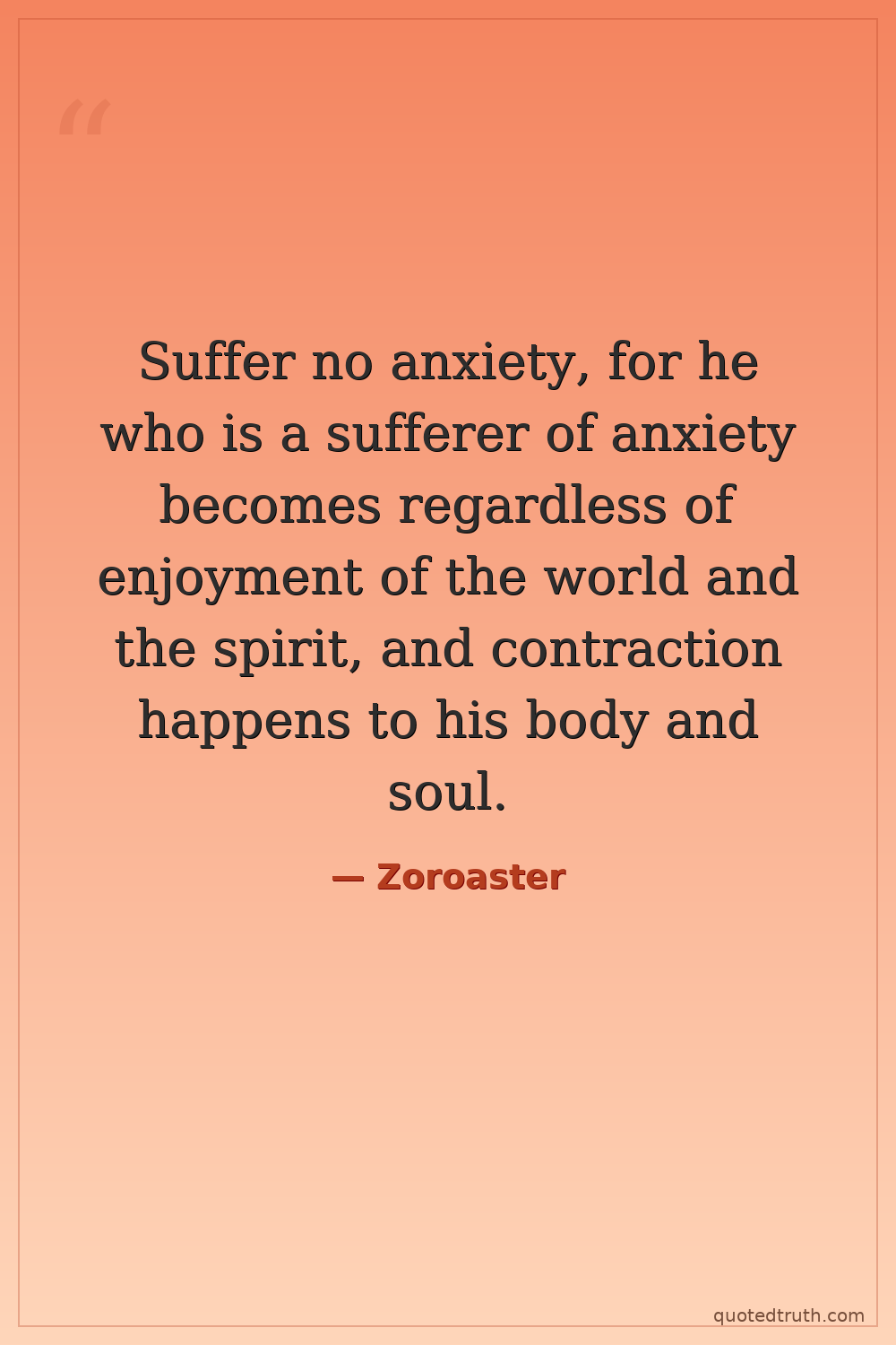 Suffer no anxiety, for he who is a sufferer of anxiety becomes regardless of enjoyment of the world and the spirit, and contraction happens to his body and soul.
