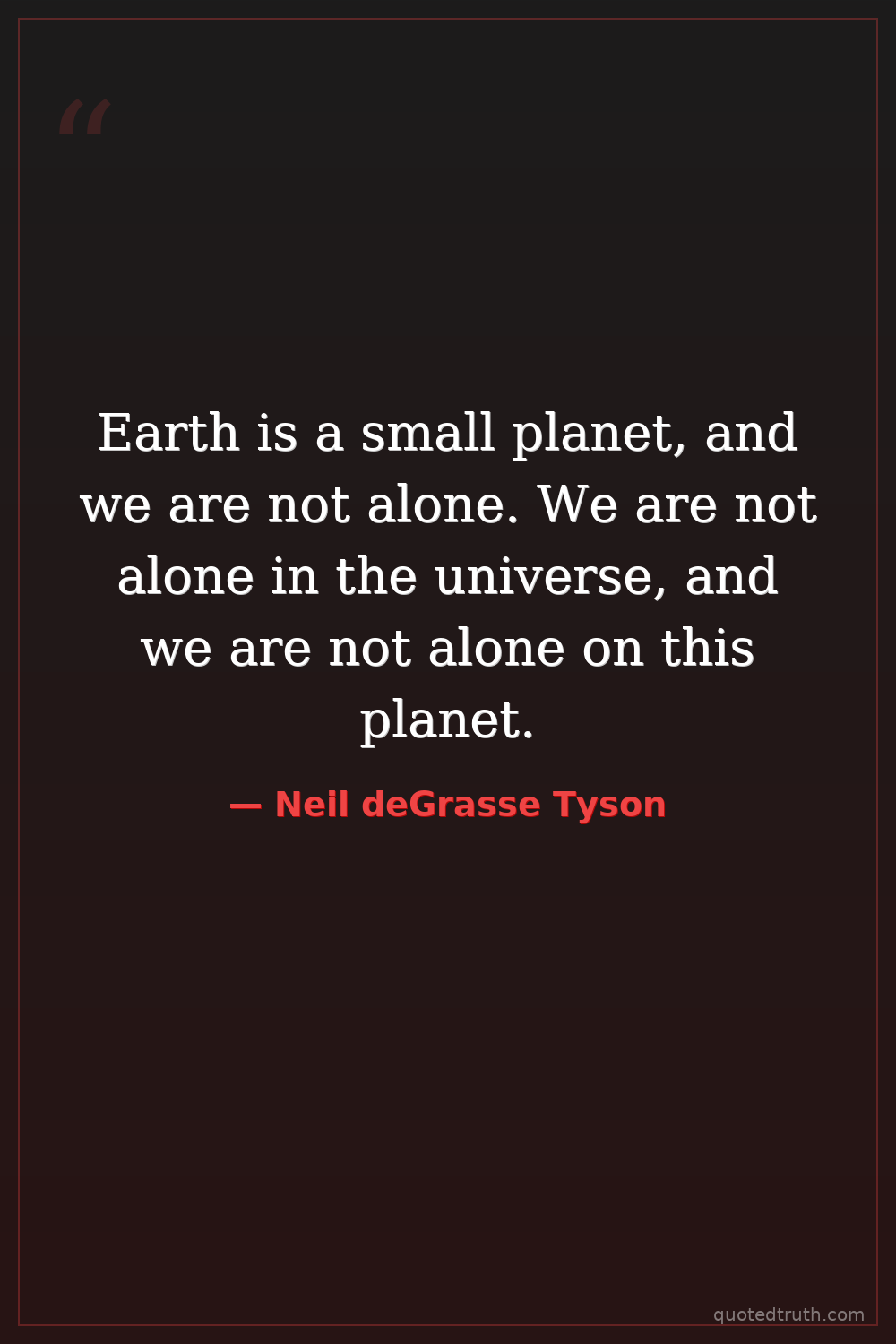 Earth is a small planet, and we are not alone. We are not alone in the universe, and we are not alone on this planet.