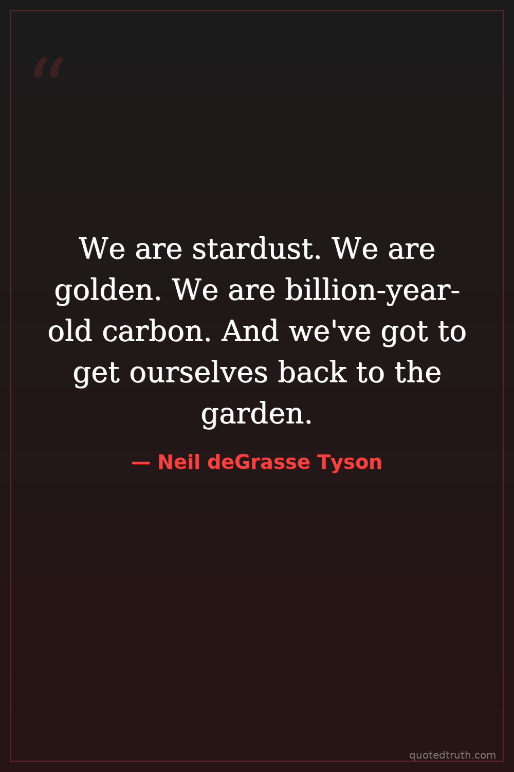 We are stardust. We are golden. We are billion-year-old carbon. And we've got to get ourselves back to the garden.