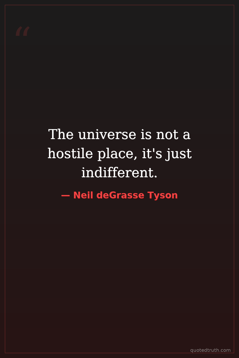 The universe is not a hostile place, it's just indifferent.