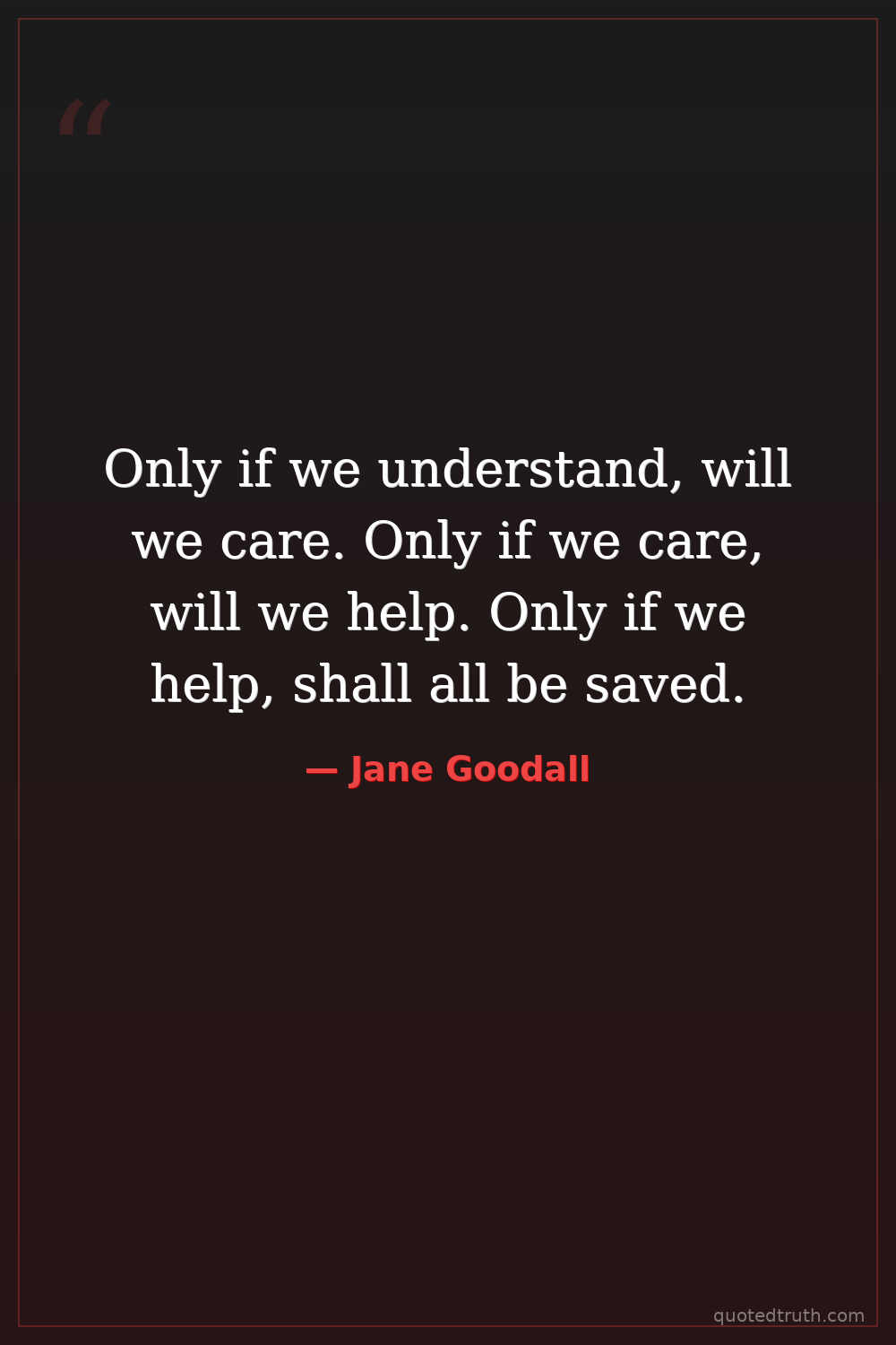 Only if we understand, will we care. Only if we care, will we help. Only if we help, shall all be saved.