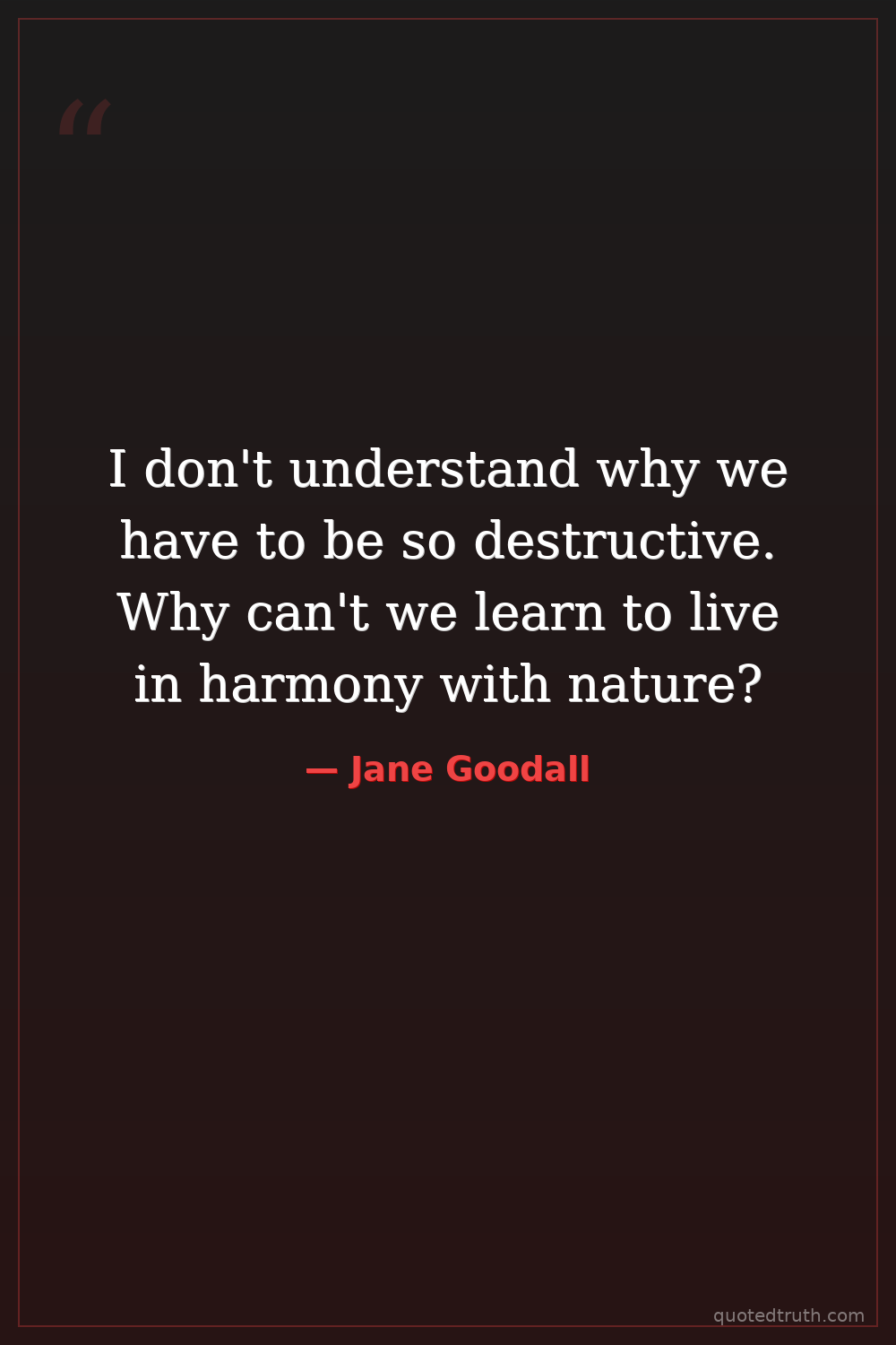 I don't understand why we have to be so destructive. Why can't we learn to live in harmony with nature?