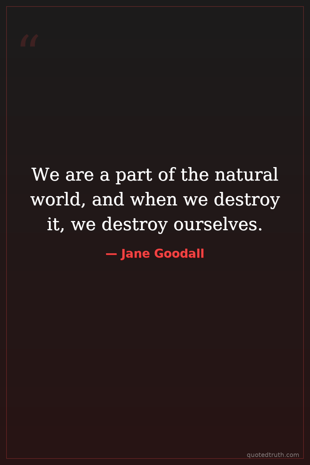 We are a part of the natural world, and when we destroy it, we destroy ourselves.