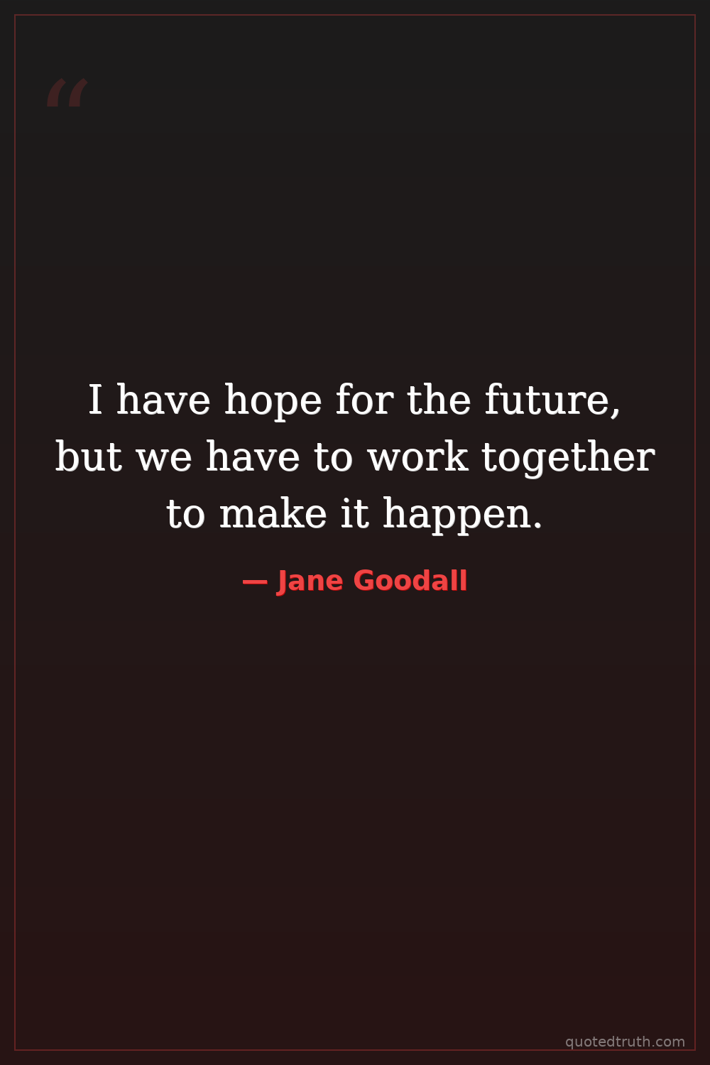I have hope for the future, but we have to work together to make it happen.