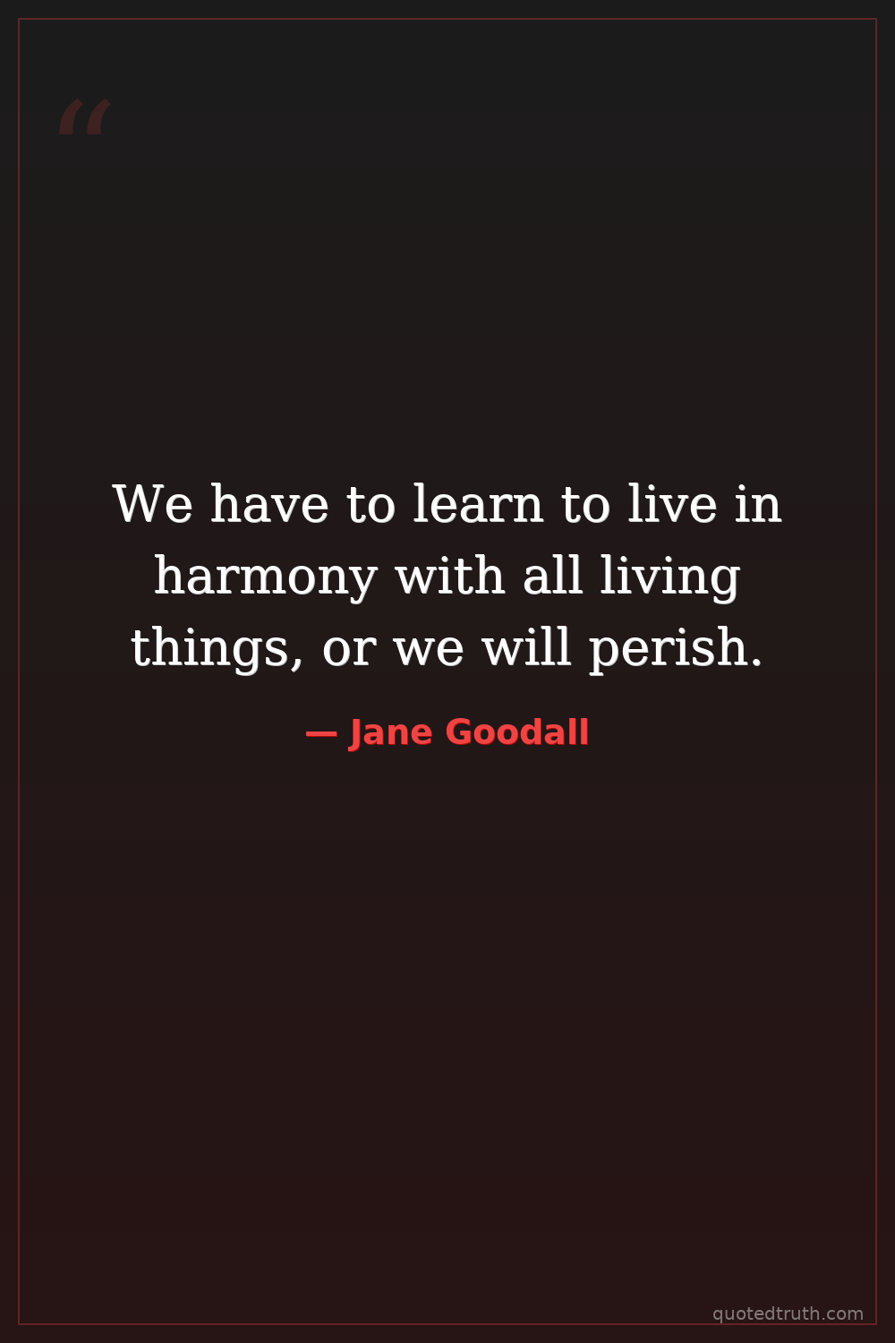 We have to learn to live in harmony with all living things, or we will perish.