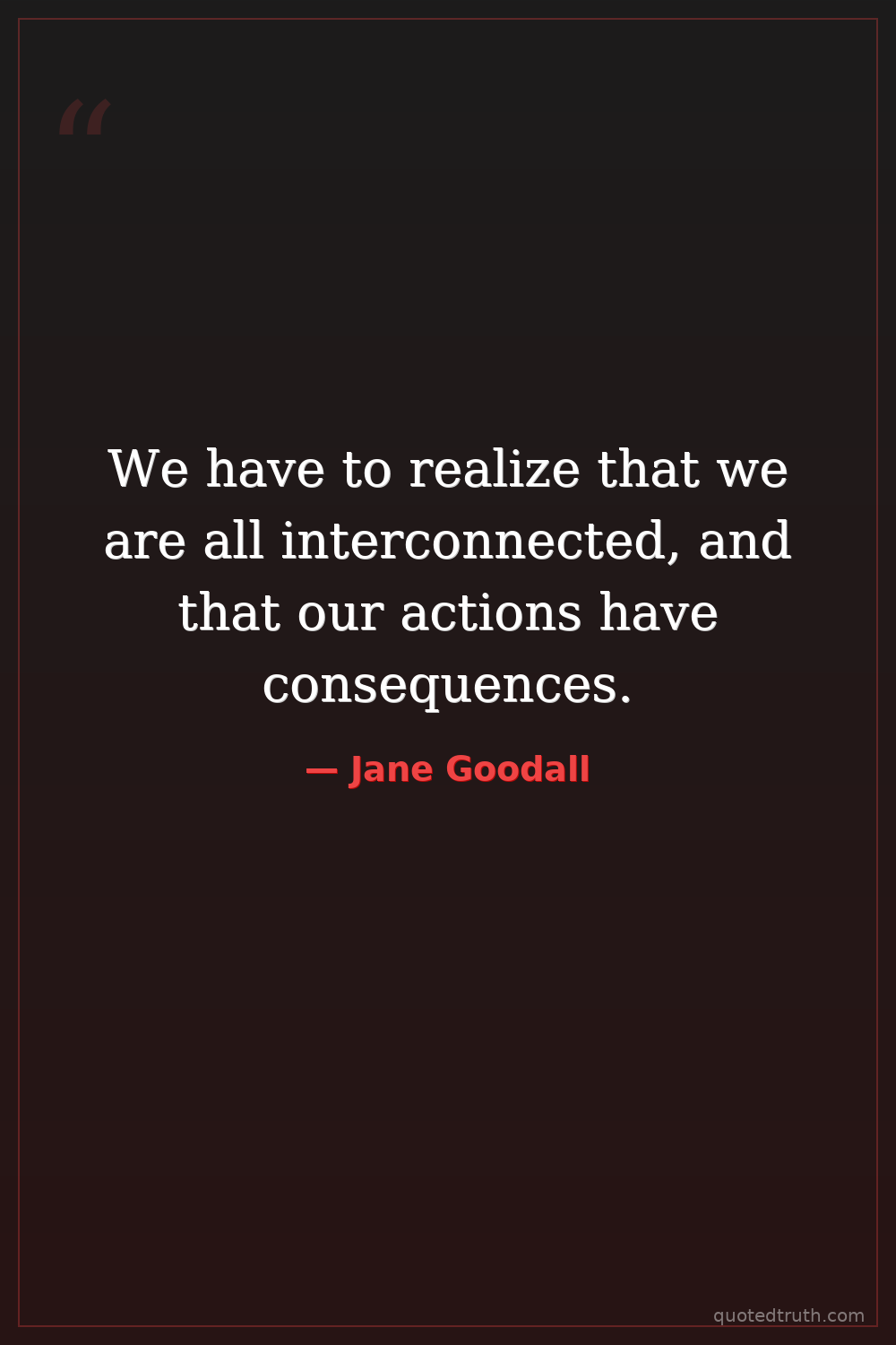 We have to realize that we are all interconnected, and that our actions have consequences.