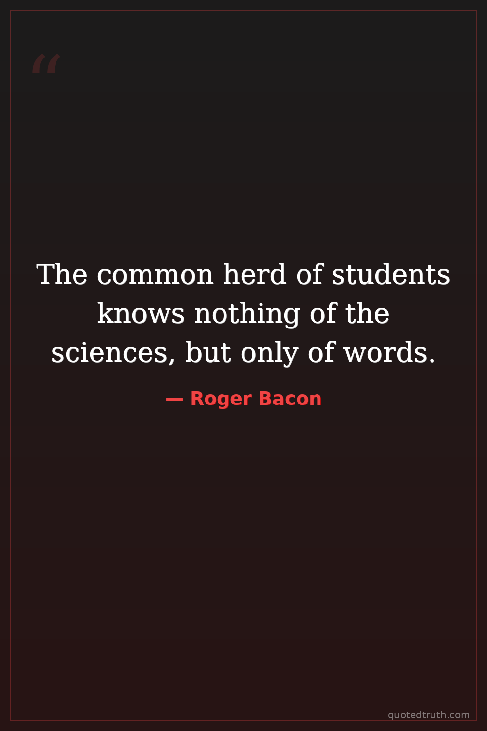 The common herd of students knows nothing of the sciences, but only of words.