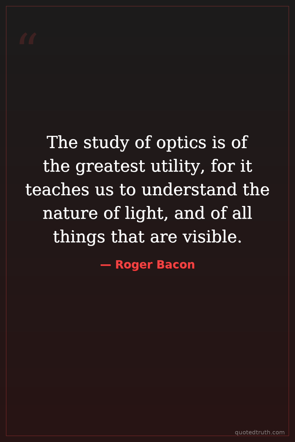 The study of optics is of the greatest utility, for it teaches us to understand the nature of light, and of all things that are visible.