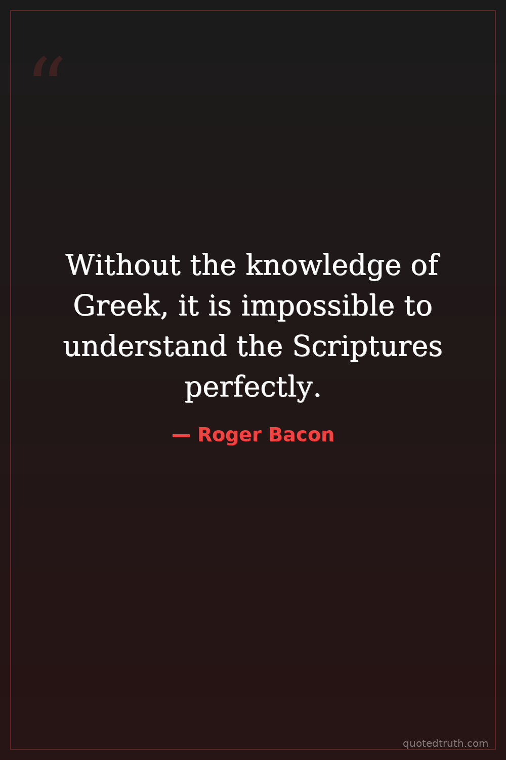 Without the knowledge of Greek, it is impossible to understand the Scriptures perfectly.