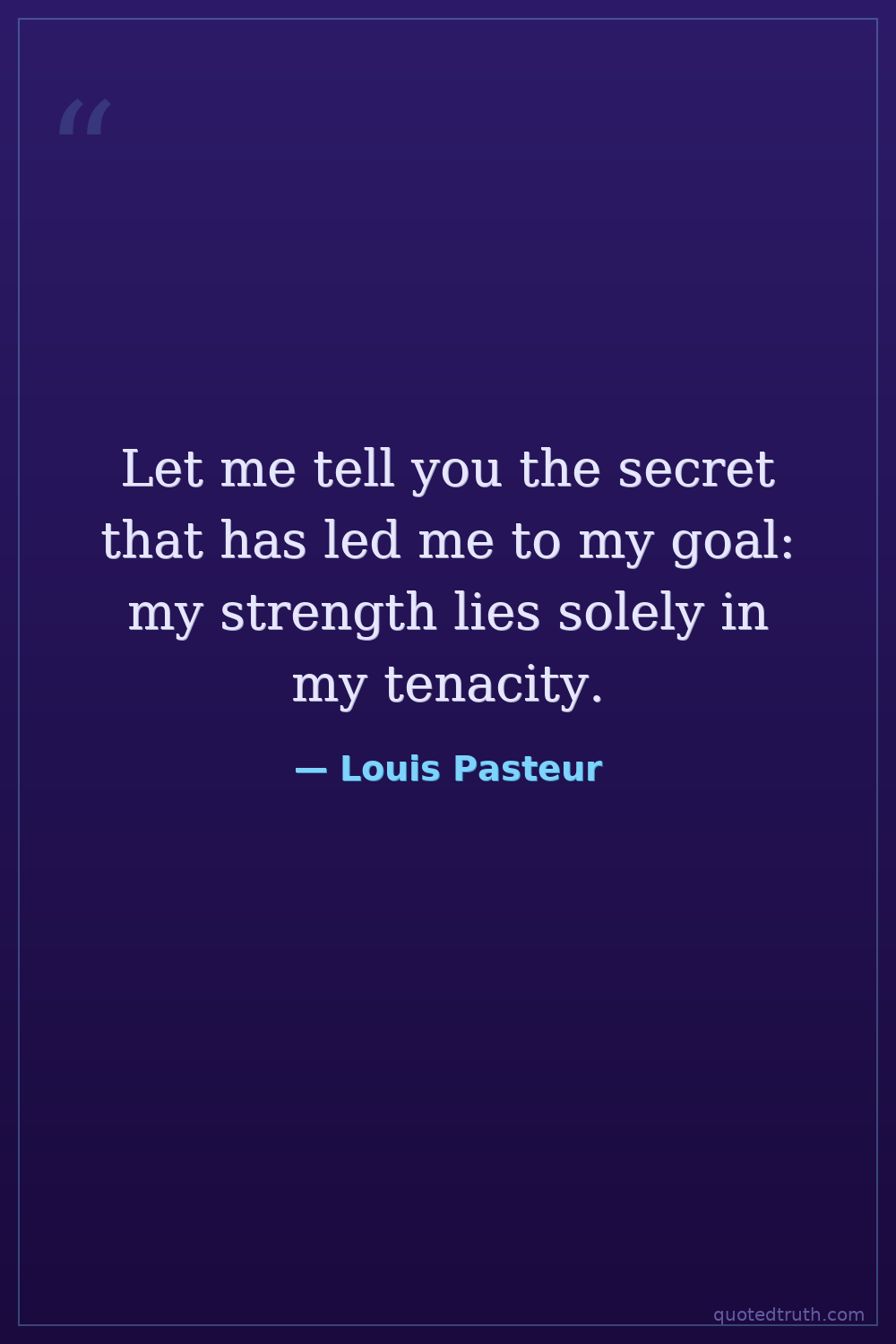 Let me tell you the secret that has led me to my goal: my strength lies solely in my tenacity.