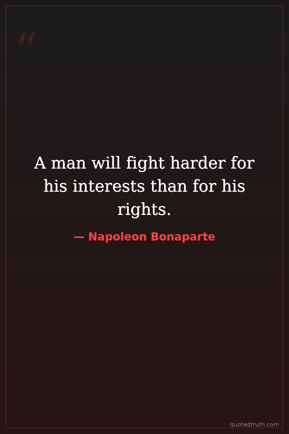 A man will fight harder for his interests than for his rights.
